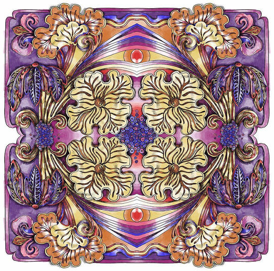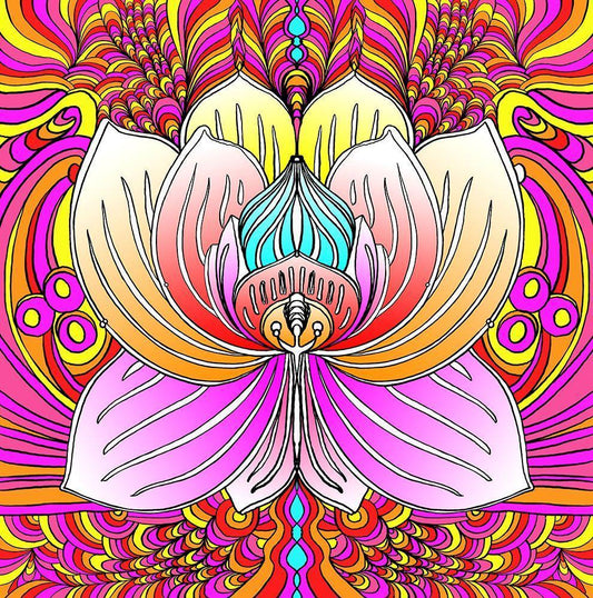 Lotus Flower Kalidescope White Modern Wood Framed Art Print with Double Matting by Green, Howie