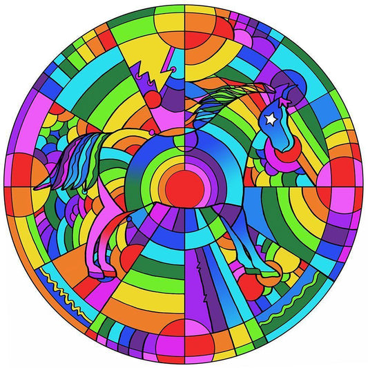 Pop Art Pony Circle White Modern Wood Framed Art Print with Double Matting by Green, Howie