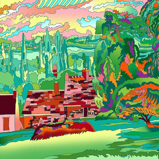 Pop Art Landscape 1019 White Modern Wood Framed Art Print with Double Matting by Green, Howie