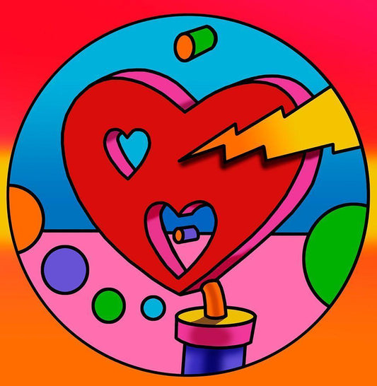 Pop-Art-Lightning-Heart-Circle White Modern Wood Framed Art Print with Double Matting by Green, Howie