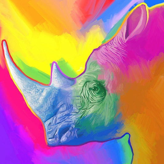 Rhino Pop Art White Modern Wood Framed Art Print with Double Matting by Green, Howie