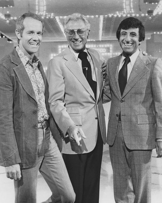 Mike Farrell, Allen Ludden, Jamie Farr, Stumpers, 1976 White Modern Wood Framed Art Print with Double Matting by Vintage Hollywood Archive