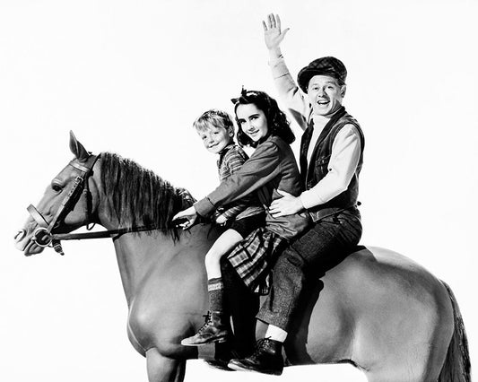 Butch Jenkins, Elizabeth Taylor, Mickey Rooney, National Velvet, 1945 White Modern Wood Framed Art Print with Double Matting by Vintage Hollywood Archive