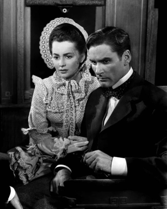 Olivia de Havilland, Errol Flynn, Santa fe Trail, 1940 White Modern Wood Framed Art Print with Double Matting by Vintage Hollywood Archive