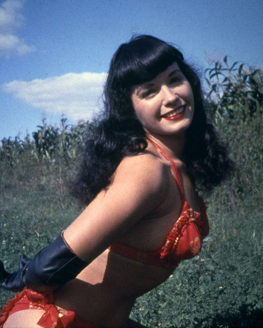 Bettie Page White Modern Wood Framed Art Print with Double Matting by Vintage Hollywood Archive
