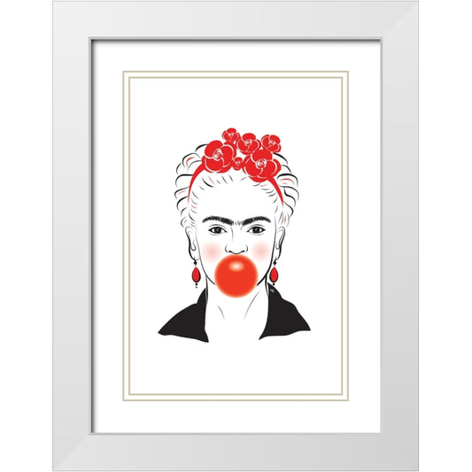Frida White Modern Wood Framed Art Print with Double Matting by Martina