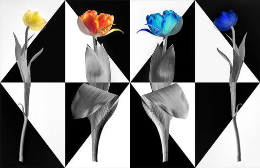 PopArt Tulips White Modern Wood Framed Art Print with Double Matting by Ruckert, Stephan