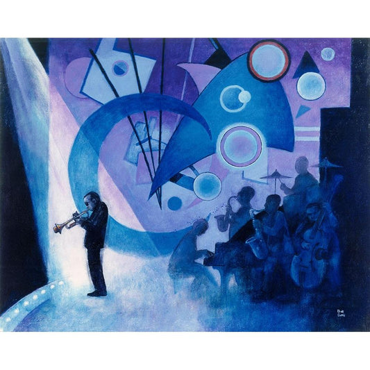 Jazz Man Black Modern Wood Framed Art Print with Double Matting by Bell, Bill