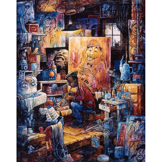 The Musician Black Modern Wood Framed Art Print with Double Matting by Bell, Bill