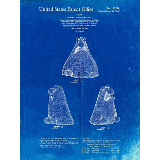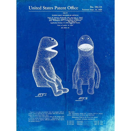 PP2-Faded Blueprint Wilkins Coffee Muppet Patent Poster Black Modern Wood Framed Art Print with Double Matting by Borders, Cole