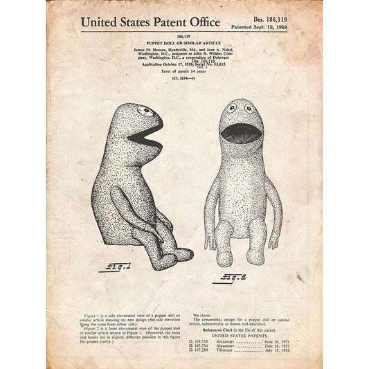 PP75-Faded Blueprint Wilkins Coffee (Wontkins) Muppet Patent Poster Black Modern Wood Framed Art Print with Double Matting by Borders, Cole