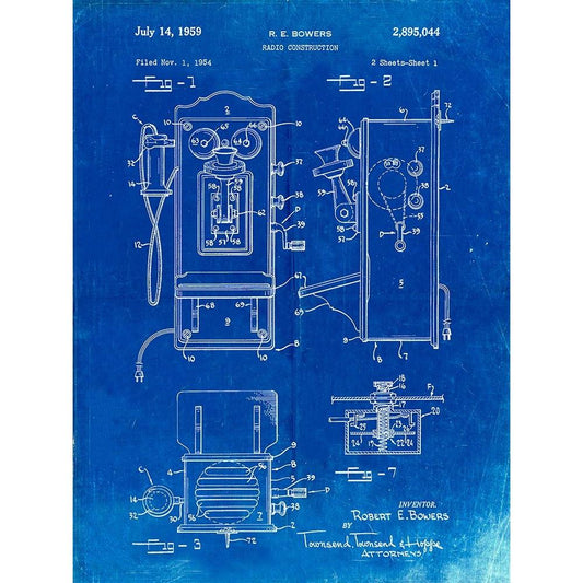 PP65-Faded Blueprint Wall Phone Patent Poster Black Modern Wood Framed Art Print with Double Matting by Borders, Cole