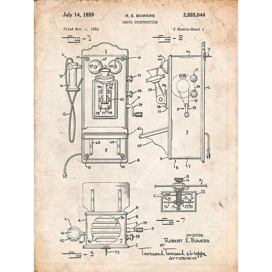 PP65-Vintage Parchment Wall Phone Patent Poster Black Modern Wood Framed Art Print with Double Matting by Borders, Cole