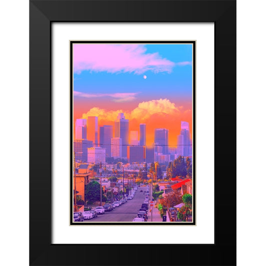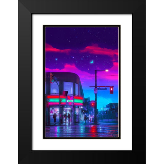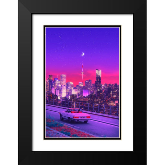 Outrun City Black Modern Wood Framed Art Print with Double Matting by Orozco, Danner