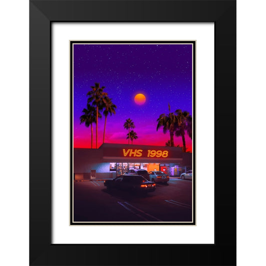 Retrowave 90s Black Modern Wood Framed Art Print with Double Matting by Orozco, Danner