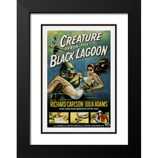 Creature From The Black Lagoon Black Modern Wood Framed Art Print with Double Matting by Screendoor