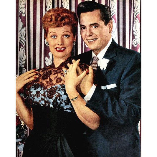 Desi Arnaz, Lucille Ball White Modern Wood Framed Art Print by Vintage Hollywood Archive