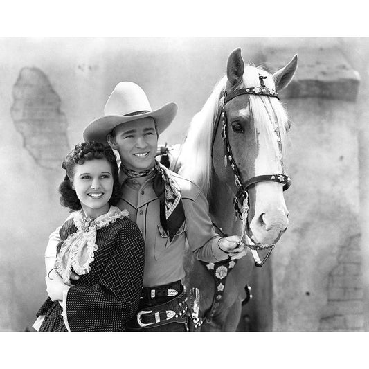 Roy Rogers, Lynne Roberts, Billy the Kid Returns, 1936 White Modern Wood Framed Art Print by Vintage Hollywood Archive
