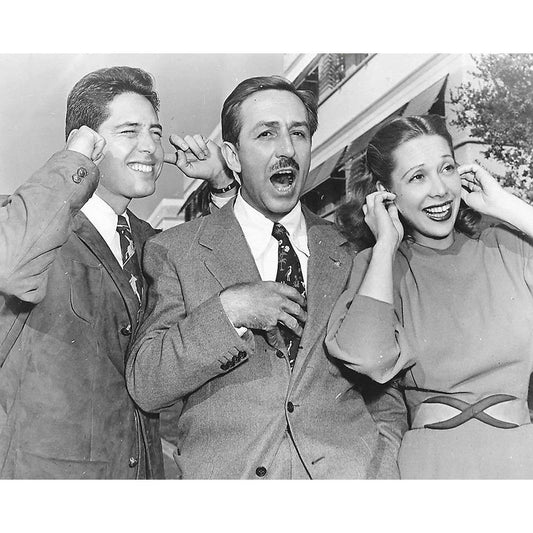 Andy Russell, Walt Disney, Dinah Shore, Make Mine Music, 1947 White Modern Wood Framed Art Print by Vintage Hollywood Archive