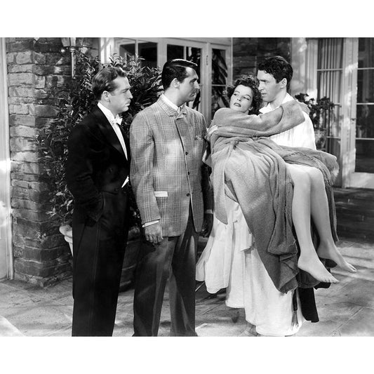 John Howard, Cary Grant, Katharine Hepburn, James Stewart, 1940 White Modern Wood Framed Art Print by Vintage Hollywood Archive