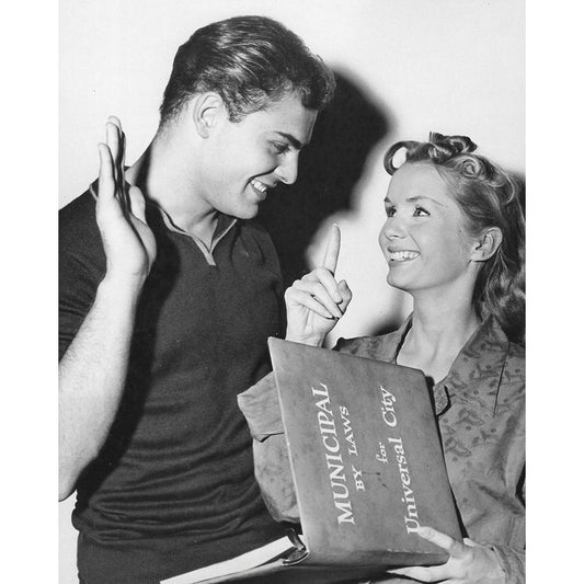 John Saxon, Debbie Reynolds, 1957 White Modern Wood Framed Art Print by Vintage Hollywood Archive