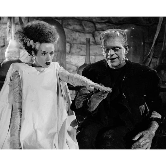 Elsa Lanchester, Boris Karloff, The Bride of Frankenstein, 1935 White Modern Wood Framed Art Print by Vintage Hollywood Archive