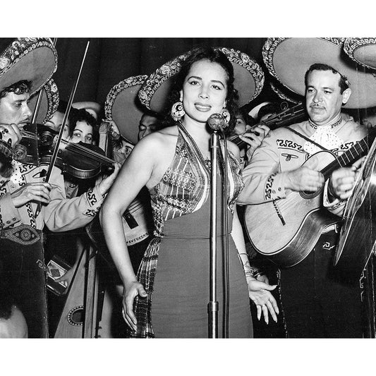 Flor Silvestre, The Mariachi Pulido, The Dominican Republic, 1955 White Modern Wood Framed Art Print by Vintage Hollywood Archive