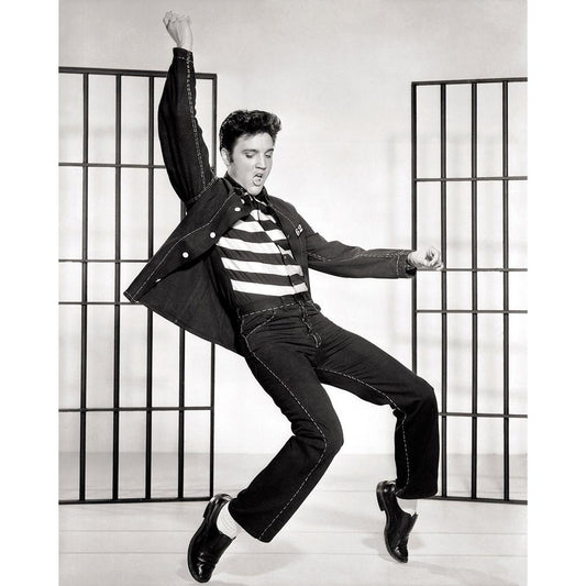 Elvis Presley, Jailhouse Rock I White Modern Wood Framed Art Print by Vintage Hollywood Archive