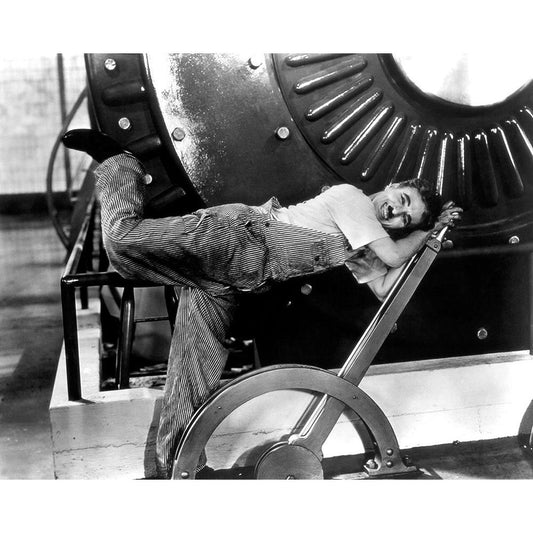 Charlie Chaplin, Modern Times White Modern Wood Framed Art Print by Vintage Hollywood Archive