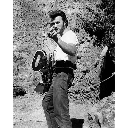 Clint Eastwood, in Mexico, 1969 White Modern Wood Framed Art Print by Vintage Hollywood Archive