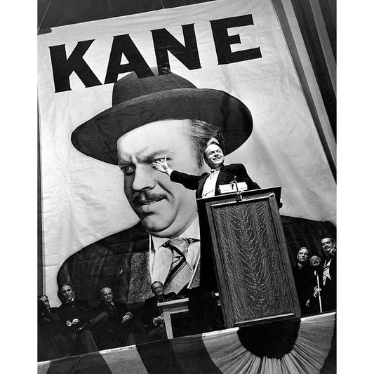 Citizen Kane, Orson Welles, Podium, 1941 White Modern Wood Framed Art Print by Vintage Hollywood Archive