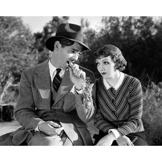 Clark Gable, Claudette Colbert, It Happened One Night, 1934 White Modern Wood Framed Art Print by Vintage Hollywood Archive