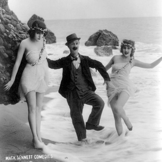 Ben Turpin, Beach Gals White Modern Wood Framed Art Print by Vintage Hollywood Archive