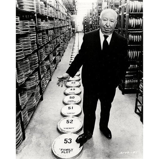 Alfred Hitchcock, 1976 White Modern Wood Framed Art Print by Vintage Hollywood Archive