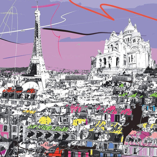 Tour Eiffel, Sacre Cœur White Modern Wood Framed Art Print by Tandem