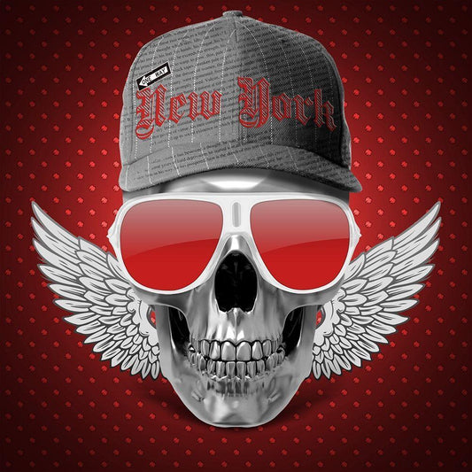 Red Skull NY White Modern Wood Framed Art Print by Braun Studio