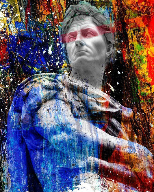 James Dean Flag Blue Sunglasses W Border White Modern Wood Framed Art Print with Double Matting by Michaels, Jerry