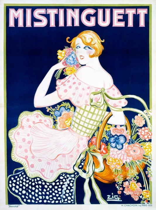 Mistinguett White Modern Wood Framed Art Print with Double Matting by Zig