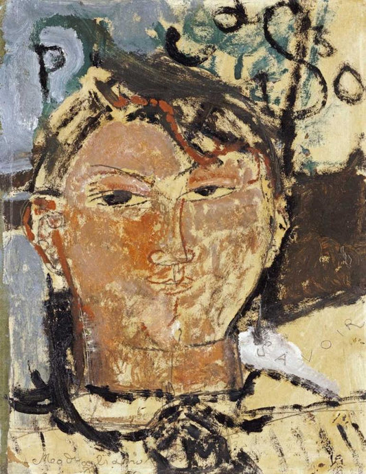 Portrait De Picasso White Modern Wood Framed Art Print with Double Matting by Modigliani, Amedeo