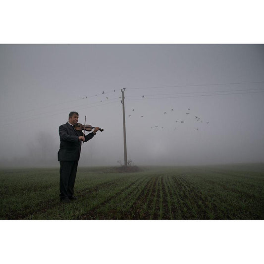 The Violin Teacher White Modern Wood Framed Art Print by Berova, Ivelina