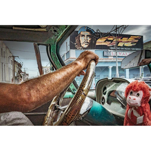 Che And The Taxidriver White Modern Wood Framed Art Print by Bauer, Andreas