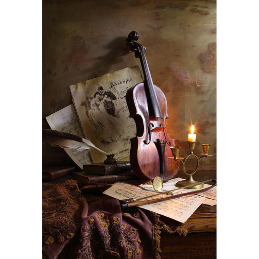 Still Life With Violin White Modern Wood Framed Art Print by Morozov, Andrey