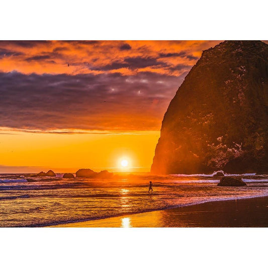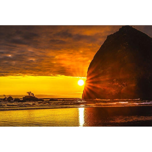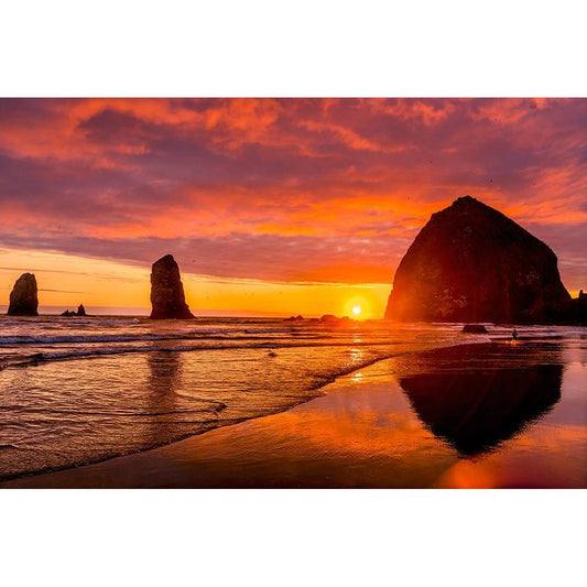 Colorful sunset-Haystack Rock sea stacks-Canon Beach-Clatsop County-Oregon-Originally discovered by White Modern Wood Framed Art Print by Perry, William
