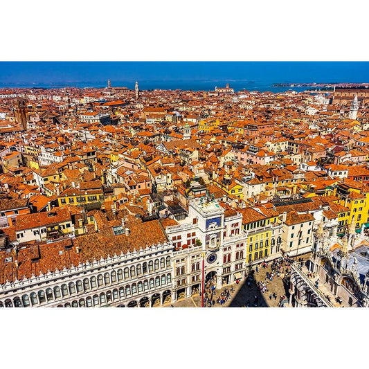 Saint Marks Square orange roofs and neighborhoods-houses and churches in Venice-Italy White Modern Wood Framed Art Print by Perry, William