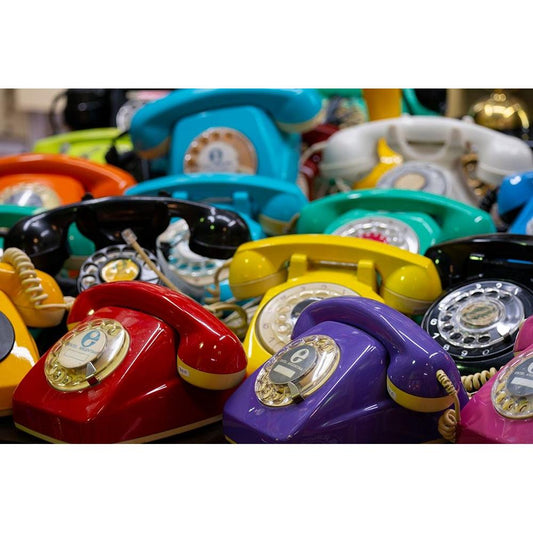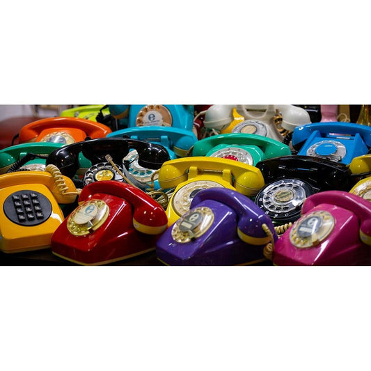 Argentina-Buenos Aires San Telmo Market-aka Mercado San Telmo Colorful vintage telephones White Modern Wood Framed Art Print by Hopkins, Cindy Miller