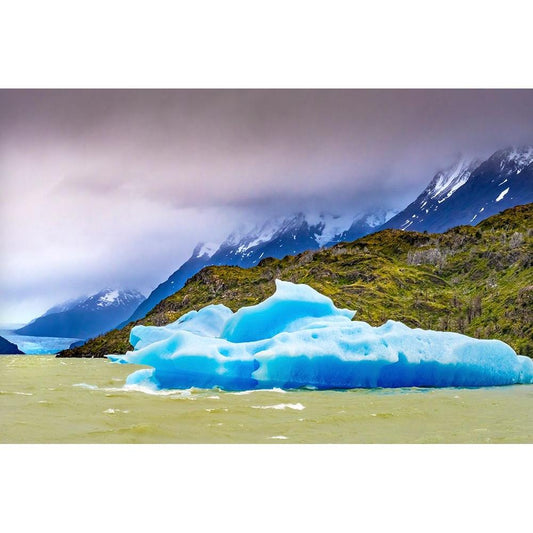 Blue Iceberg Grey Lake-Torres del Paine National Park-Patagonia-Chile-Iceberg is from Grey Glacier White Modern Wood Framed Art Print by Perry, William
