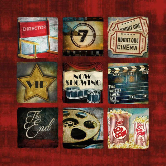 Now Showing Movie Tryptic White Modern Wood Framed Art Print by Mollie B.