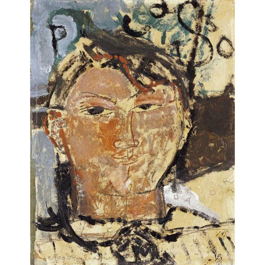 Portrait De Picasso White Modern Wood Framed Art Print by Modigliani, Amedeo