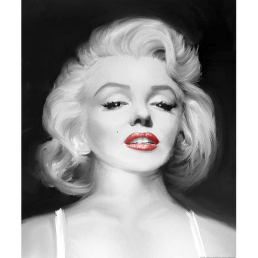 Marilyns Pose Red Lips White Modern Wood Framed Art Print by Rahim, Ellie