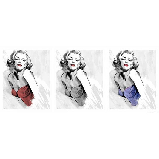 Three Faces Of Marilyn White Modern Wood Framed Art Print by Rahim, Ellie